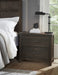 Vaughan Bassett Dovetail Nightstand in Java 750-227. Vaughan Bassett has developed a patent-pending process that allows them to accelerate how wood ages. We have kept the splits; knots; cracks; and the bold grain pattern found in Oak lumber to create this reclaimed look in this beautiful and unique bedroom.