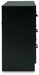 Experience the captivating allure of this dresser, an effortless blend of casual and refined aesthetics. Its two-tone finish combines satin black with a rich brown wood tone for a modern, relaxed vibe that you'll love waking up to. Perfectly suited for your contemporary home, this dresser has plenty of drawer space to tuck away your wardrobe and spare bed linens.