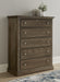 Vaughan Bassett Carlisle 5 Drawer Chest in Dark Sable 156-115. Add versatile and stylish storage to your bedroom with this five drawer chest. 2 Inch solid maple tops with planked end panels that display a patchwork of stunning streaks; wormholes; and graining. Earthiness and rich warmth gives the warm natural finish a polished look of authenticity. Oval key escutcheon plate on the top drawers with a vintage nickel drawer pull.