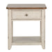 Liberty Farmhouse Reimagined End Table with Basket in Antique White