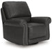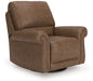 Everyone can have the best seat in the house with this swivel glider recliner. Its nailhead trim puts the finishing touches on the traditional roll arms you love. The recliner's comfy, durable cushions—wrapped in a rustic yet sophisticated faux leather—keep you feeling relaxed, while its turned legs show that style and quality flow from top to bottom. Plus the smooth reclining motion and 360-degree swivel keep you in the flow of conversation.