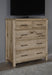 Vaughan Bassett Dovetail Standing Dresser in Sun Bleached White 754-004. Vaughan Bassett has developed a patent-pending process that allows them to accelerate how wood ages. We have kept the splits; knots; cracks; and the bold grain pattern found in Oak lumber to create this reclaimed look in this beautiful and unique bedroom.